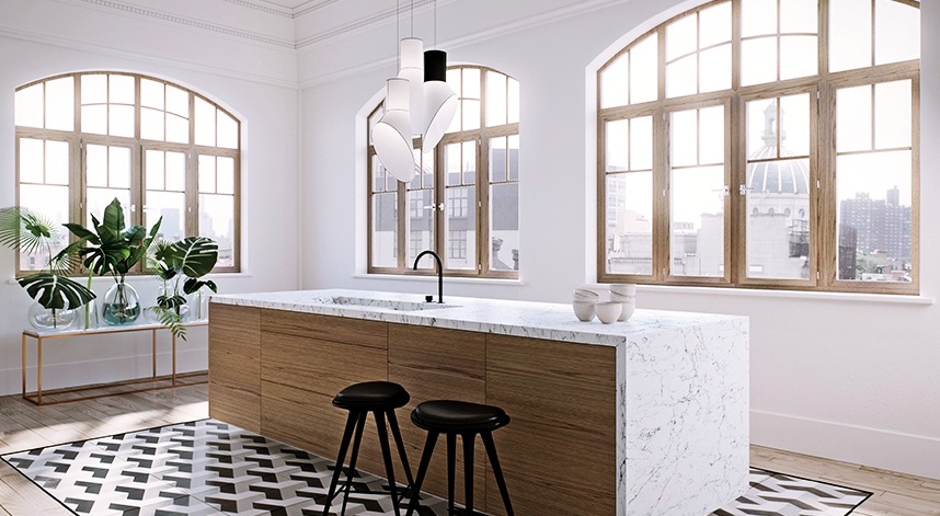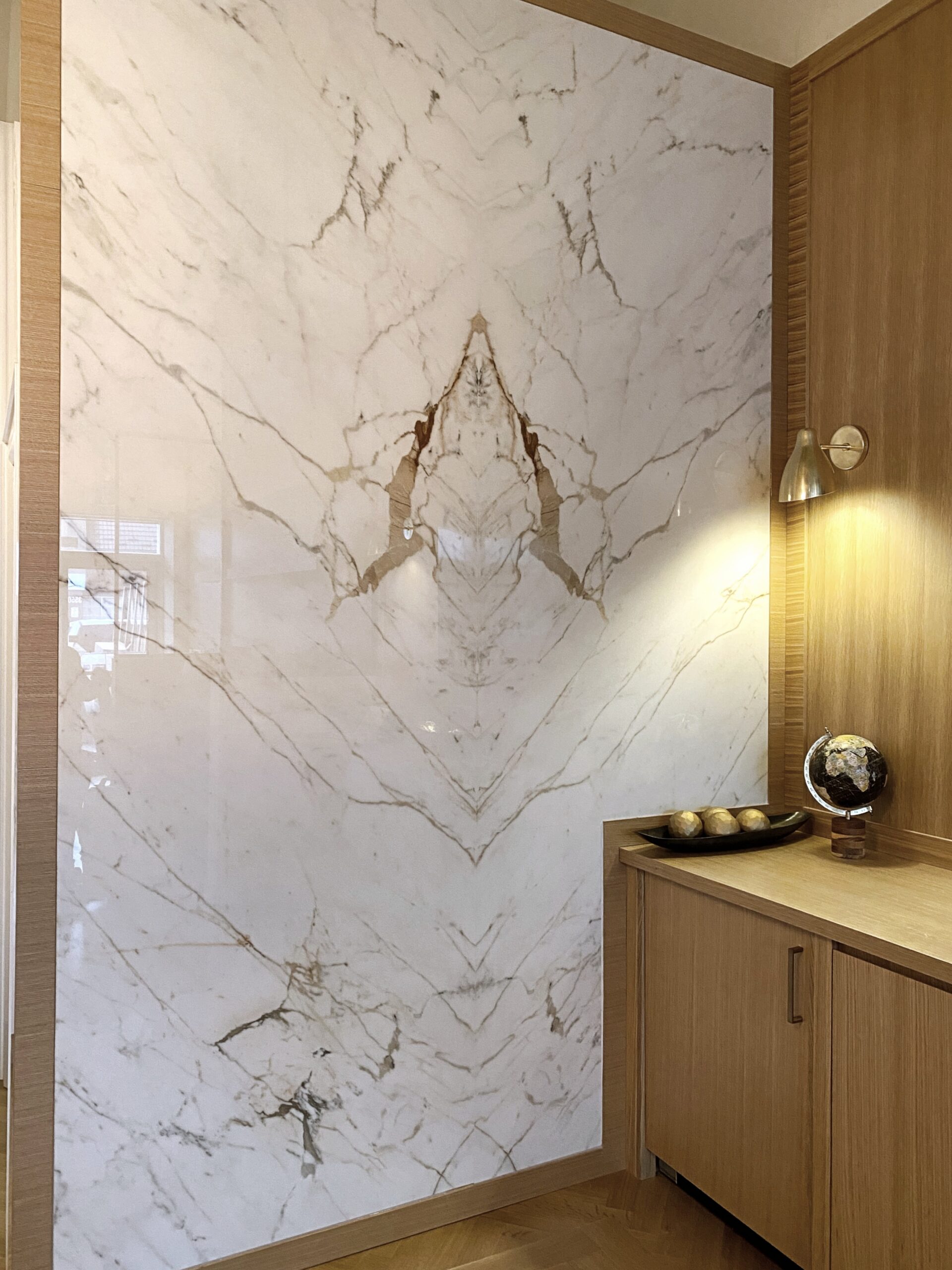 - Large selection of quartz, porcelain, granite and marble slabs.
