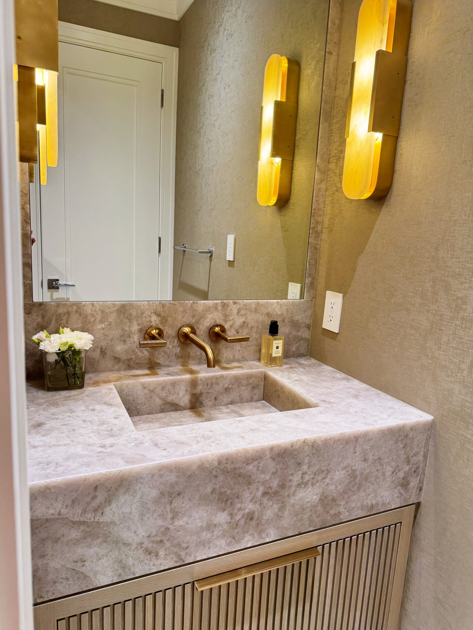 At STONE COUNTERTOP FABRICATION, we prioritize 100% satisfaction with both our services and products. We utilize state-of-the-art technology and follow a step-by-step process to ensure that every job is completed with the highest quality, efficiency, and on-time delivery. we have the purchasing high volume and power to offer our customers the lowest prices in the market without compromising on quality and customer service. Our showroom gives you the chance to see a gallery of slabs of the stone, rather than colour samples. we have a CNC saw, and we can fabricate even the smallest items with precision and efficiency using water and garnet abrasive. We are committed not only to producing high-quality products but also to being environmentally conscious. All of our water is 100% recycled.